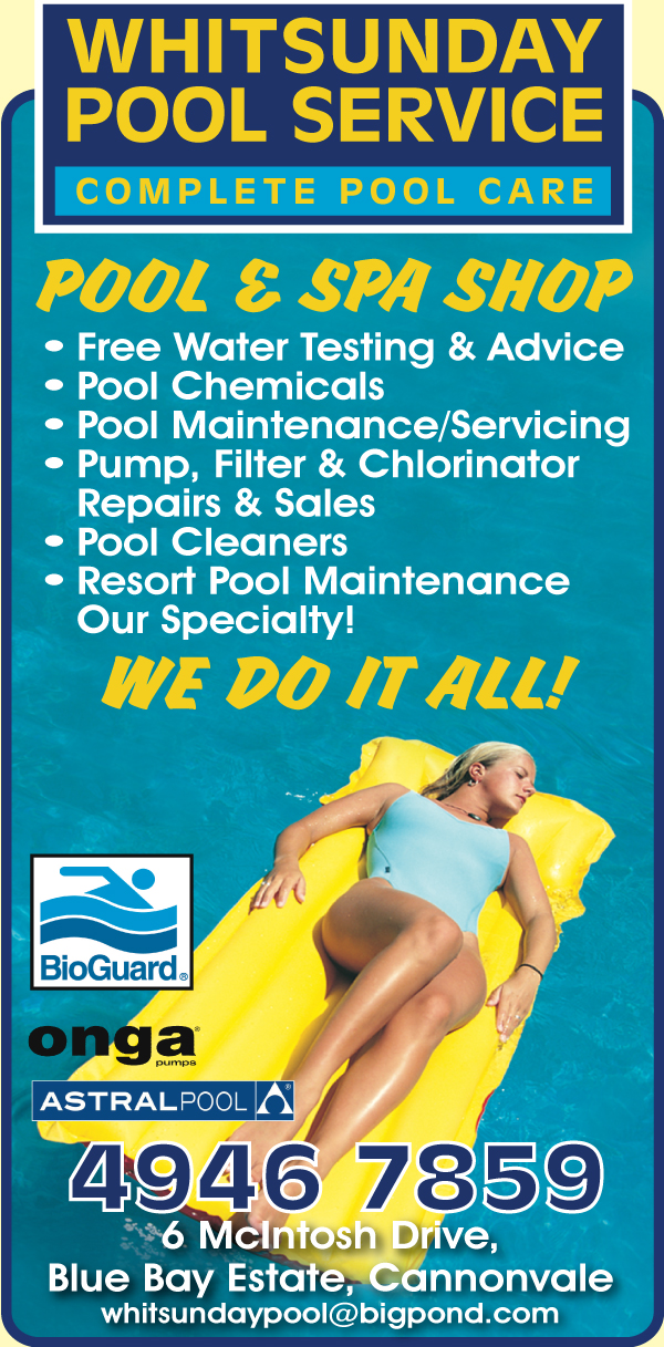 Whitsunday Pool Service is your one stop shop for all your pool and spa products, free water testing and advice, chemicals, equipment sales and repairs and maintenance services. We do it all!