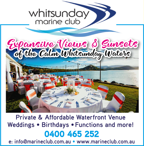 Belonging to the community organisations of the Volunteer Marine Rescue and the Whitsunday Game Fishing Club, the venue of the Whitsunday Marine Club is a cost effective location. Hire the venue as a blank canvas and cater and decorate yourself or work with one of the local professional event organisers to create your dream wedding. The Whitsunday Marine Club offers expansive views over the Whitsunday Islands and the calm waters of Pioneer Bay. With a north-east aspect this truly is the best venue in the Whitsunday to watch the sun set. Providing ample outdoor space, with freshly cut lawns this is one of the only venues in the Whitsundays to offer you the option of a complete outdoor wedding experience.