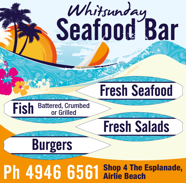 For the Whitsundays yummiest fish and chips, premium seafood, delicious burgers, and fresh salads... the Whitsunday Seafood Bar in Airlie Beach is the only place to go!