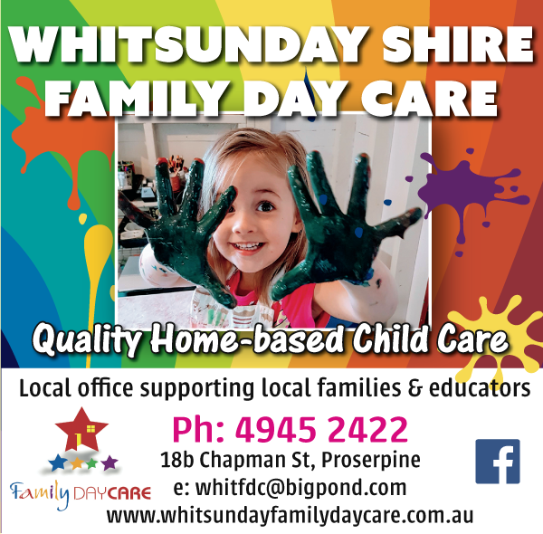 Whitsunday Shire Family Day Care offers quality child care in our educator’s homes, catering for new babies through to pre-teens in Proserpine, Mount Julian, Wilson Beach, Strathdickie, Mount Marlow, Cannonvale, Woodwark, Jubilee Pocket and Midge Point. Whitsunday Shire Family Day Care has been providing quality childcare since 1984 and has been rated as EXCEEDING under the National Quality Standards.