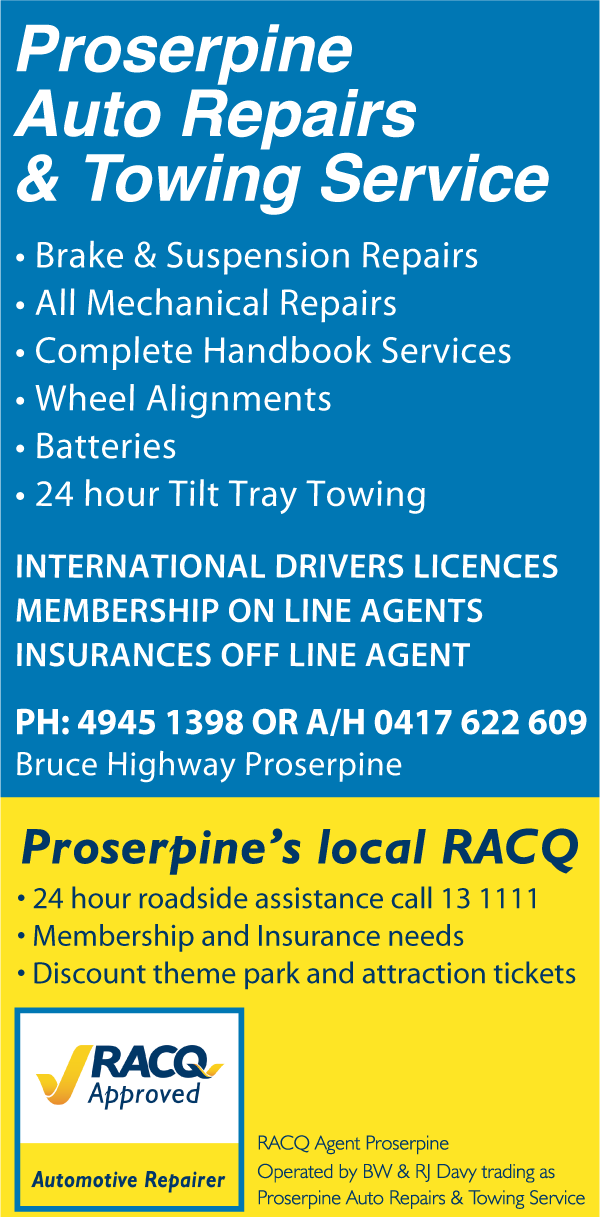 Proserpine Auto Repairs and Towing Service is your local RACQ approved automotive repairer and RACQ agent. Our mechanics are trained in all aspects of automotive repairs, including general repairs, on all makes and models of vehicles.