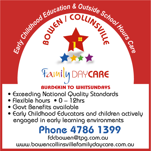 Bowen/Collinsville Family Daycare offer a safe, secure and stimulating home environment for infants and children through to teens. Early childhood education and outside school hours care specialists.