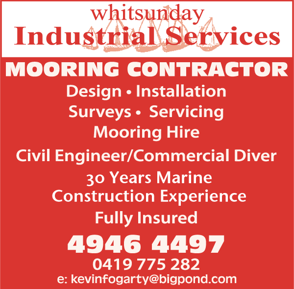With over 30 years marine and construction experience as a civil engineer and commercial diver, Kevin from Whitsunday Industrial Services is your fully insured, expert mooring contractor. From design and installation, to surveys and servicing, we can professionally take care of it all! We also provide mooring hire. Phone Kevin now!