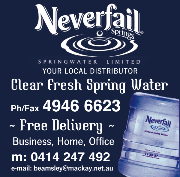 'Neverfail' is your local distrubutor of clear, fresh spring water for your business, home or office needs. Our ‘Neverfail’ Springwater is available in 600mL, 11 Litre and 15 Litre bottles and 10 litre casks, and we offer a range of stylish water coolers to suit your individual needs. Free delivery also available!