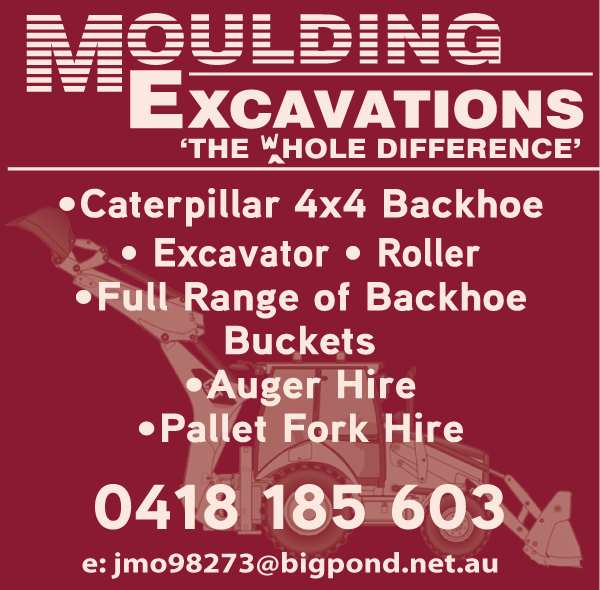 For the 'hole' difference, call the expert team at Moulding Excavations. Offering a caterpillar 4x4 backhoe, excavator, roller, auger hire, pallet fork hire and a full range of backhoe buckets, we have everything you need to complete your project professionally and thoroughly.