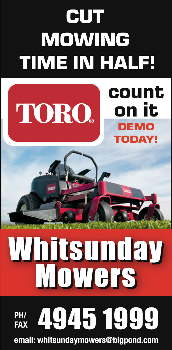 Cut your mowing time in half! Whitsunday Mowers are your local dealers for Toro, Cox, Ferris and Shindaiwa quality products. Expert sales, service, repairs and advice on the perfect equipment for your specific needs!