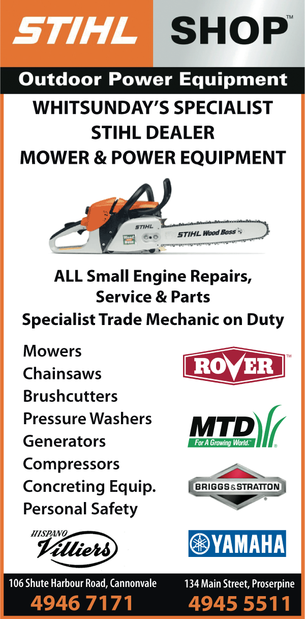 Stihl Whitsunday are your specialist local dealer of Australia’s number #1 trusted brand Stihl, offering outdoor garden power equipment sales, service and repairs. Our expert trade mechanic is on duty to assist with all your small engine repairs, service and part requirements.