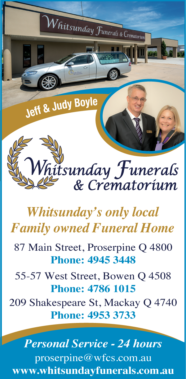 Whitsunday Funerals and Crematorium are your local, affordable family funeral home. We deliver thoughtful, caring attention before, during and after the service. It's a special kind of courtesy because we genuinely care. Offering 24 hour a day, personal service.