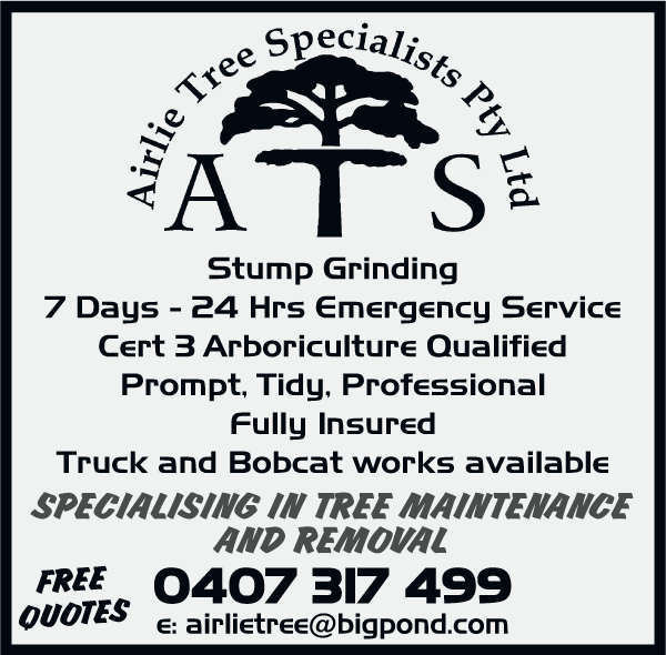 Airlie Tree Specialists are your local professionals for tree maintenance, removal, and stump grinding, offering a 24 hours a day 7 days a week emergency service. Fully insured and arboriculture qualified, we always deliver prompt, tidy and professional service. Truck and bobcat works are also available. Phone now for a free quote and expert advice!