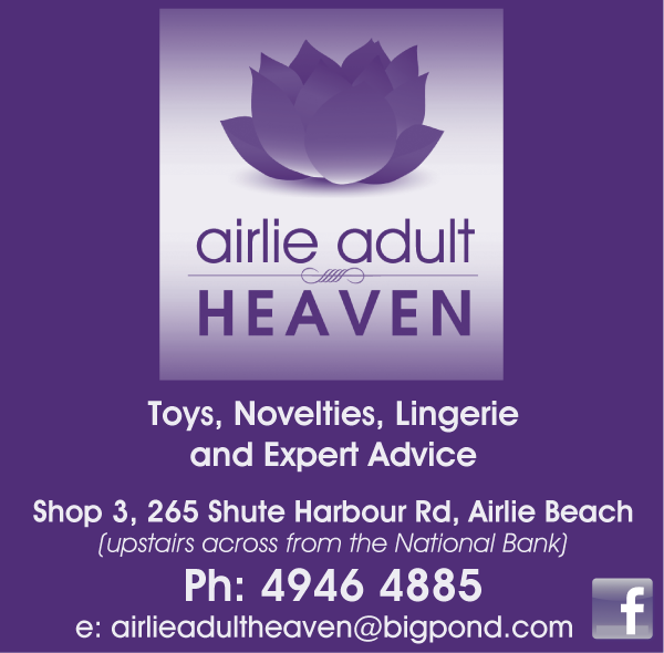 Airlie Adult Heaven is family owned and operated business run by local couple Steve and Leanne Macare. Airlie Adult Heaven offers customers a great range of adult toys, lingerie, special order lingerie, adult movies, magazines and novelties, in addition to a large range of party supplies for bucks, hens and birthdays. Come in and see the friendly team today, Airlie Beach’s original Adult Store! Upstairs, main street Airlie Beach, opposite the National Bank