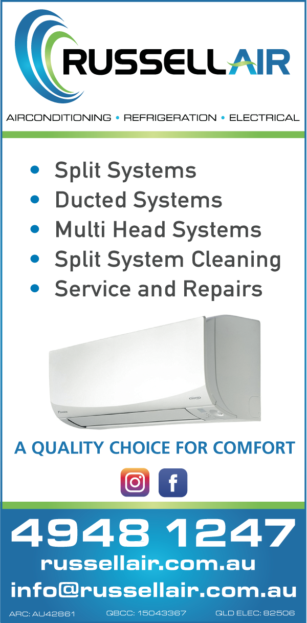 Proudly owned and operated by Mitch Russell, Russell Air is quickly and successfully growing into a reputable Business. Our fully certified and licensed air conditioning and refrigeration technicians and electrical contractors work together to provide you the very best in air-conditioning products and services. Servicing all of the Whitsunday’s and Mackay region, we specialise in providing all leading brands of air-conditioners and accessories, and can assure friendly and efficient service.