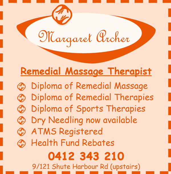 Margaret Archer has been a remedial massage therapist for 25 years, with Diplomas of Remedial Massage, Remedial Therapies and Sports Therapies at Nature Care College in Sydney.